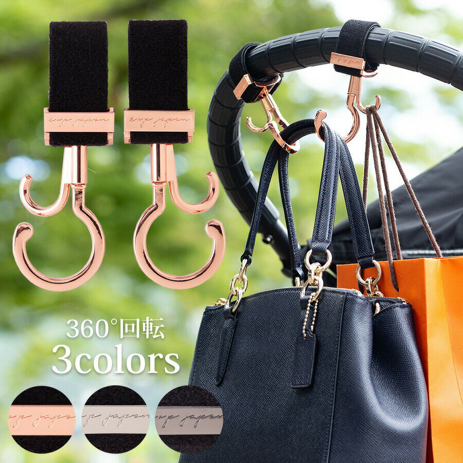 ≪クーポン配布中≫ 【ベビー・キッズ・ママ小物】Exprenade 360°回転バギーフック(2本組)※金具部分ブラック※ LUXURIOUS ベビーカーフック ベビーカー 荷物かけ フック ホルダー おでかけ ギフト プレゼント e.x.p.japon エクスプレナード